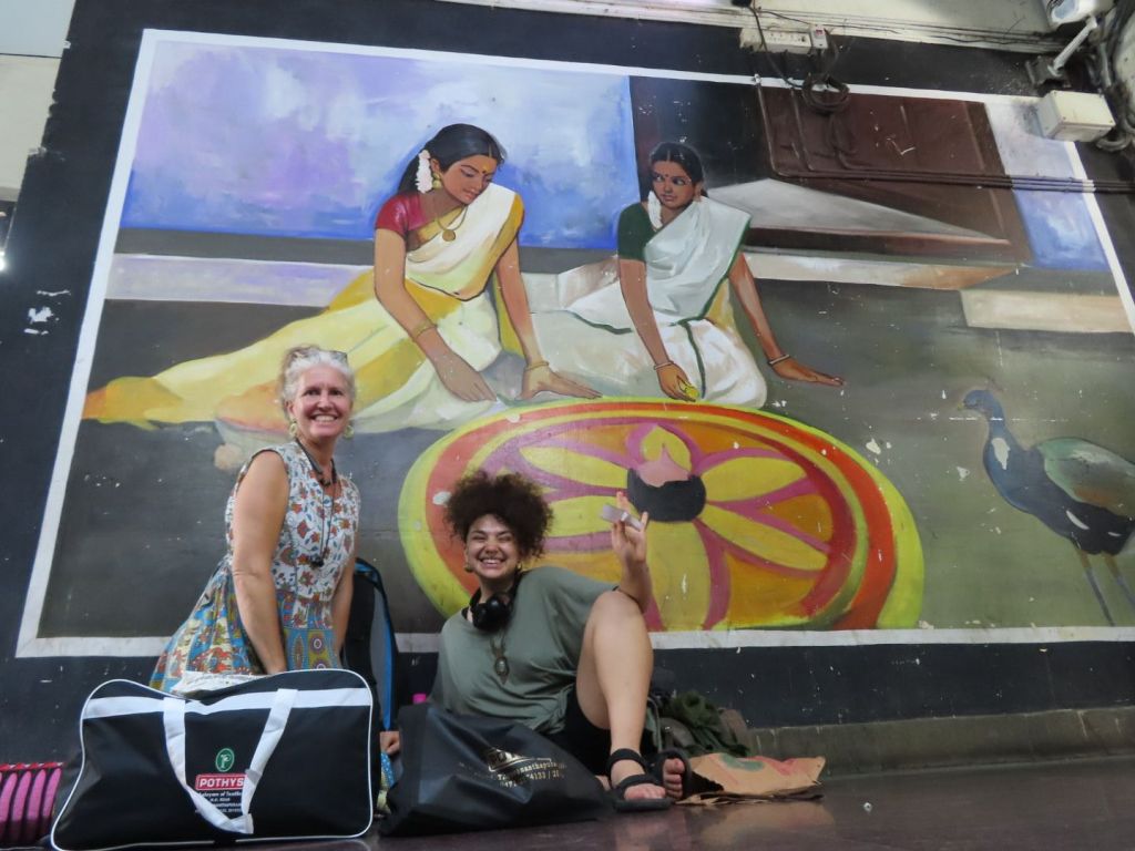 With a shipping spree at Pothy’s, Trivandrum on the way. A sweaty travel day arriving at Amritapuri Ashram at the end.