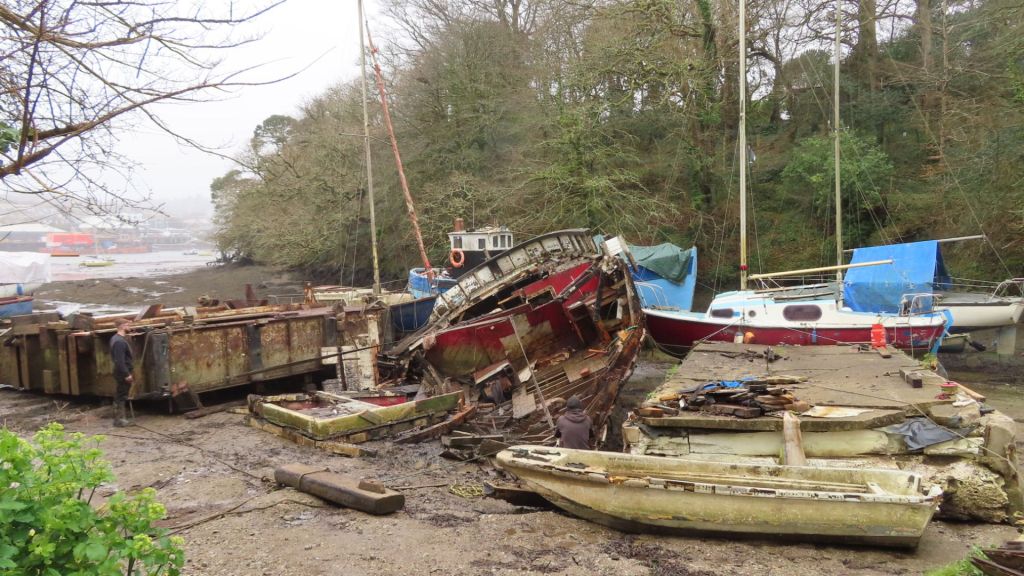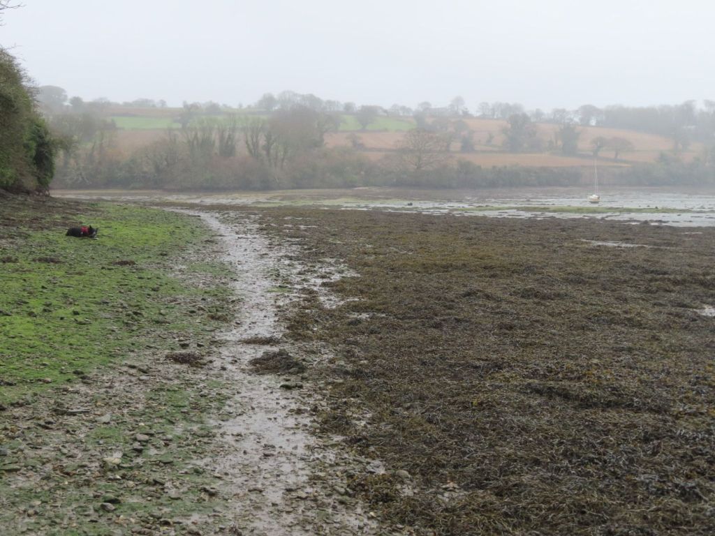 Walking on the seaweeded estuary mud round Falmouth, Cornwall