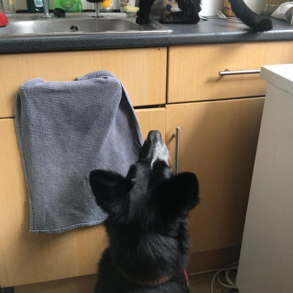 Otto finally gets close and calm with a cat! Never happened before but we decided to introduce Otto to Scott’s cat who is blind…it worked 🥰