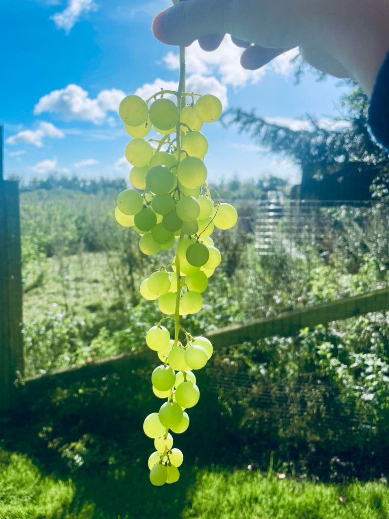 The old vine still delivers grapes and Gunhild is still feeding her chickens herself and gathering their eggs.