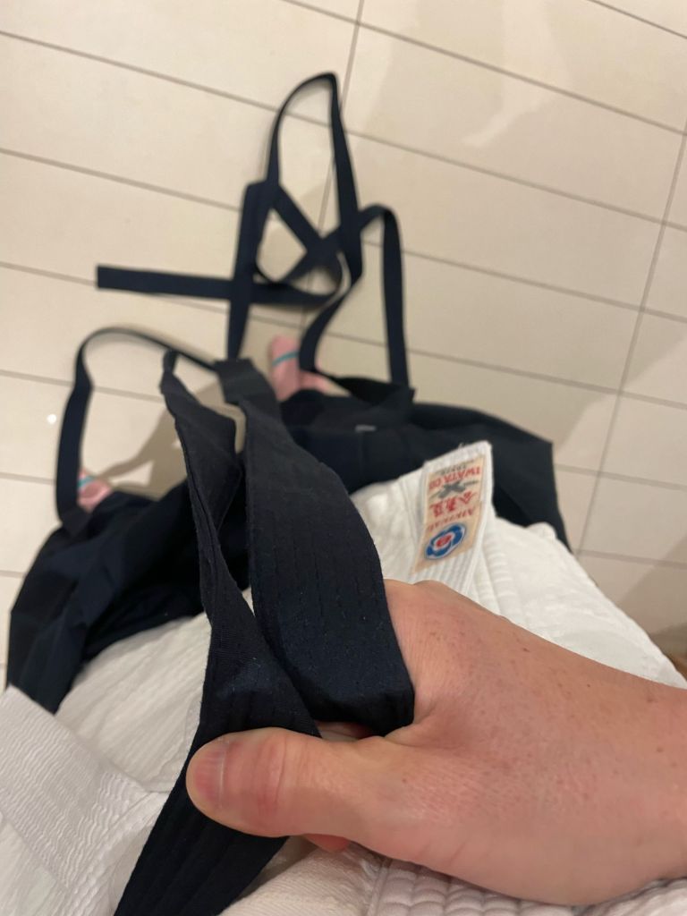 In the evening tuesday Aikido training, wearing my hakama and being able to manage to tackle all this string and tie them in appropriate bows.
