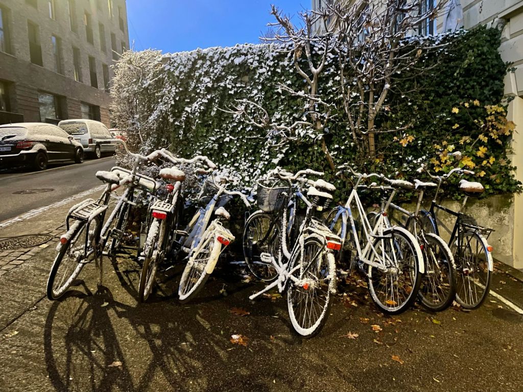 Bicycling to work in all weather. This day turned out very pretty with a crisp and clear blue sky. Had a great day at work, a lot achieved working together with a great colleague.