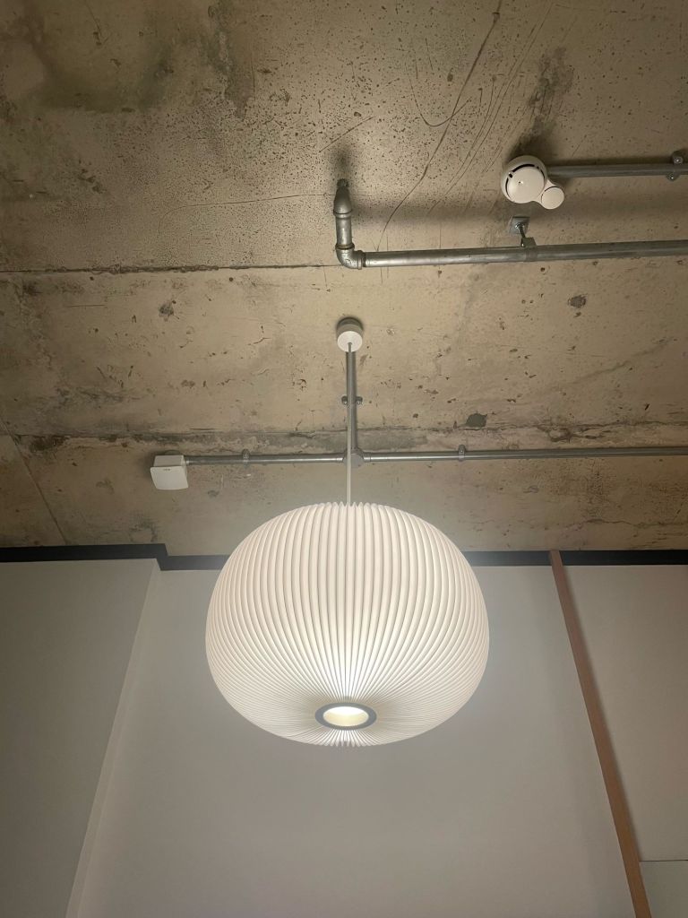 Seeing the light back at the hotel in Canary Wharf, noticing that there is the same lamp in my room as one we have at home.
