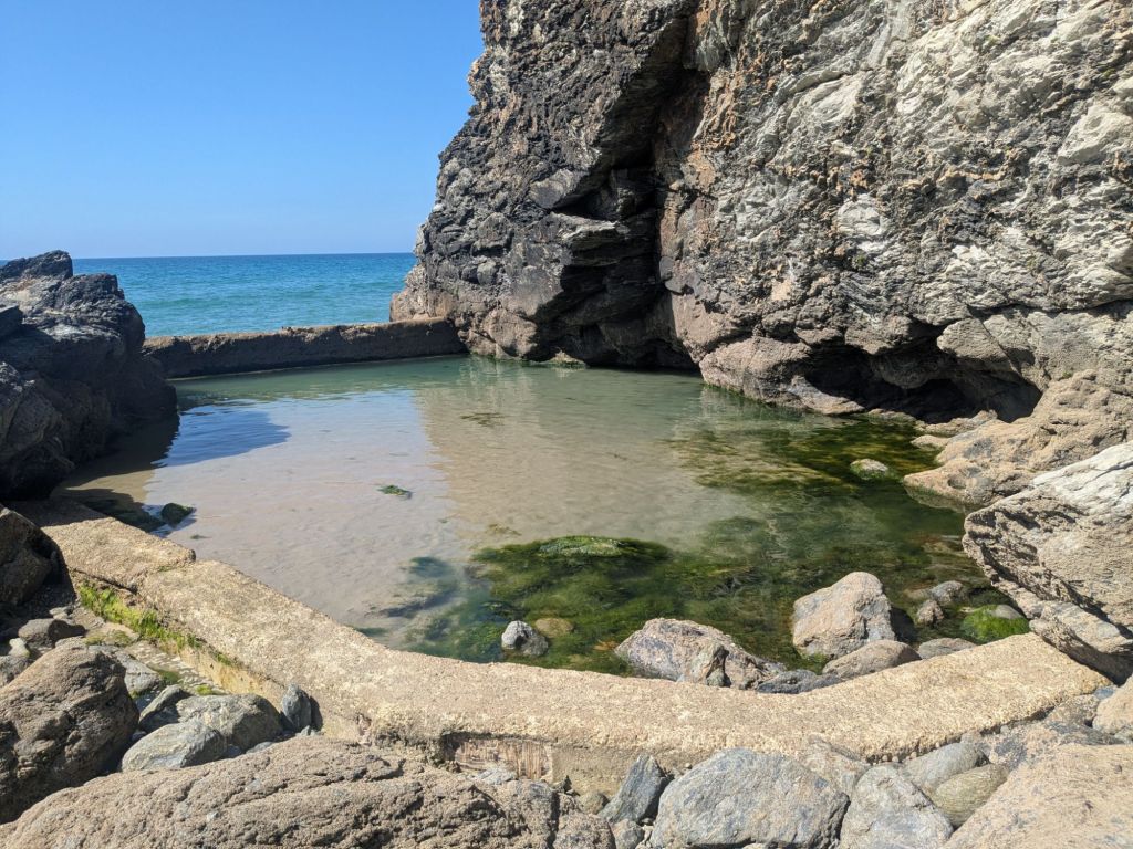 Helped make a landscape in a flower bed for clay objects to be placed during the festival. A pleasure of a job. Afterwards found a mermaid’s pool which girls I’d hung out with last night told me about. I had it to myself as the tide was coming in when it is filled again. Swam afterwards in the sea. Happy days.*****