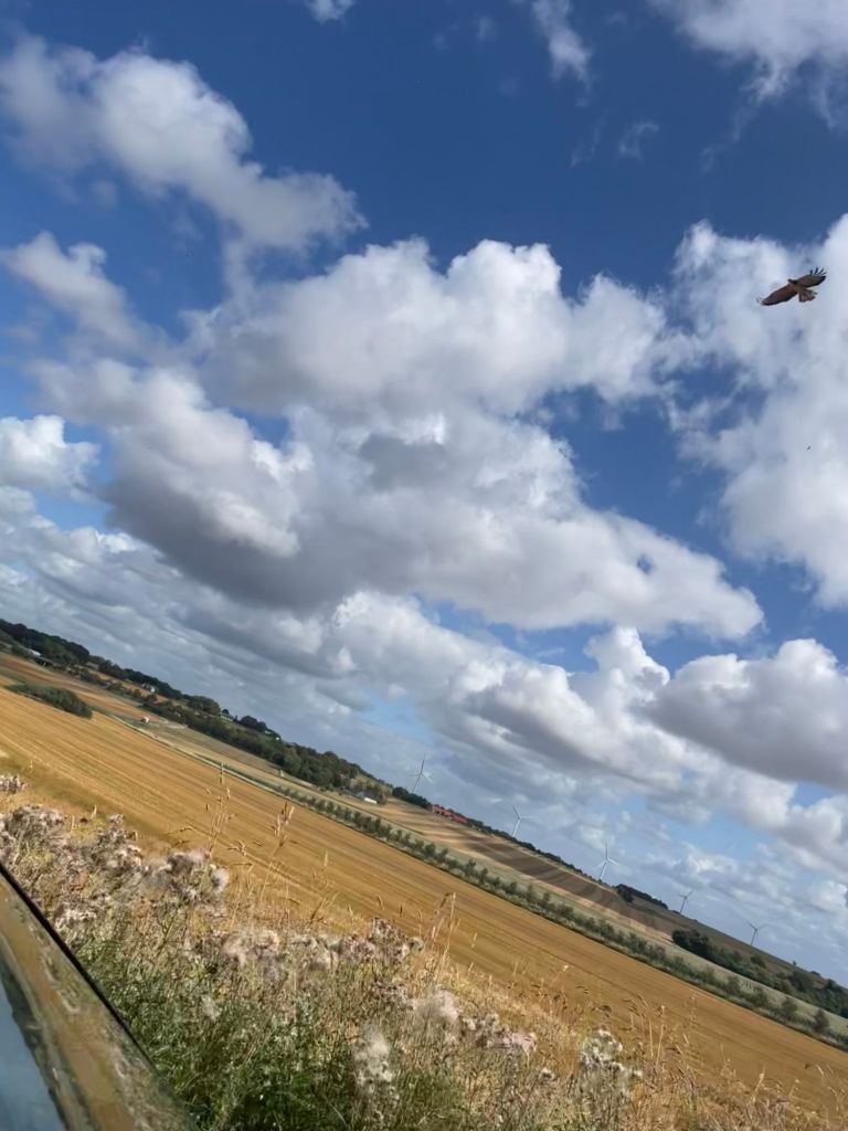 Visiting Hjerk Kirkevej in Jylland, seeing this Big Bird of prey circling above the surrounding fields.