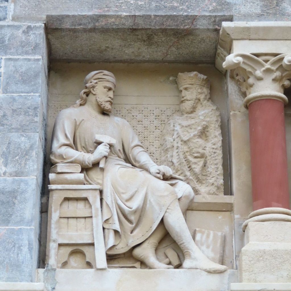 I went to another new yoga class at 7am, then after breakfast walked Otto through the park to town to buy more yarn for my tufting and onto my studio where I finished a painting I’d started last year. My studio mates also came in and it was lovely reuniting with them as we hadn’t seen each other for a long time. I enjoyed the walk home seeing this beautiful carving, one of a whole series along a church.